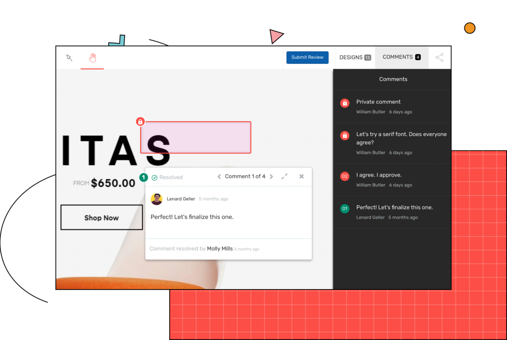 Bring everyone on the journey. Everyone including your clients will be able to see comments and feedback directly on creative assets. No more attachments and email back and forth.